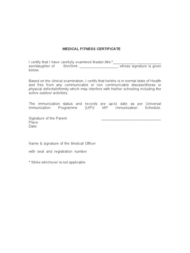 It is required for various types of dangerous occupations... 13.10.2020 · physical fitness certificate format. Medical fitness certificate format : Where can you get the medical fitness certificate format? Or when you go to a government hospital to get a medical fitness certificate, you can also buy a medical fitness … A medical fitness certificate is a document issued by a registered medical practitioner that attests that an individual is fit for work after a medical examination. So hurry and get it today! Remember me on this computer. Log in with facebook log in with google. Enter the email address you signed up with and we'll email you a reset link.